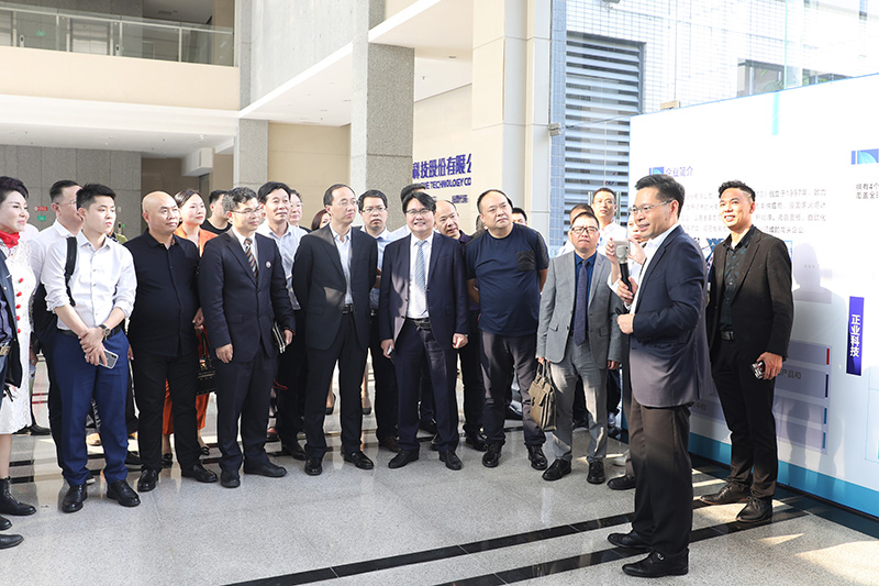 考察團一行首先參觀了正業科技展廳,董事長徐地華詳細介紹了公司發展歷程、行業布局、優質產品以及創新技術等情況。